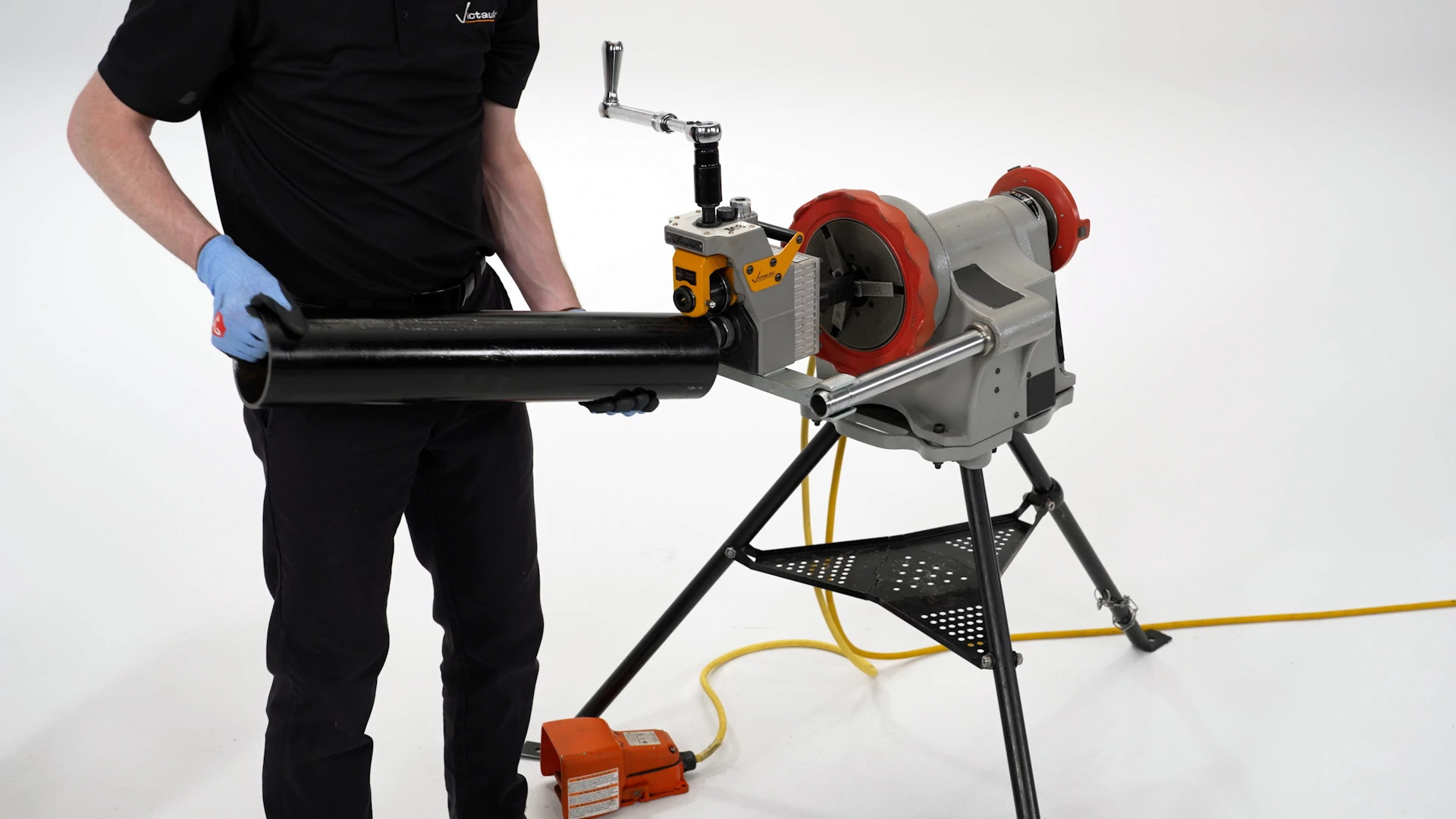 - In-air or power-driven roll grooving tool for 1-12″ OGS and 1″ IGS field fabrication