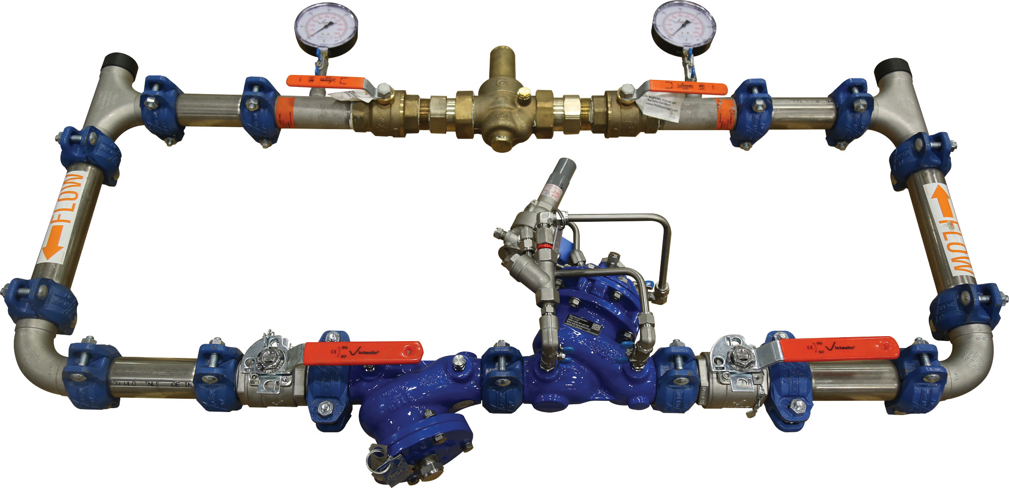 - Pre-assembled, ready-to-install pressure reducing valve (PRV) station
