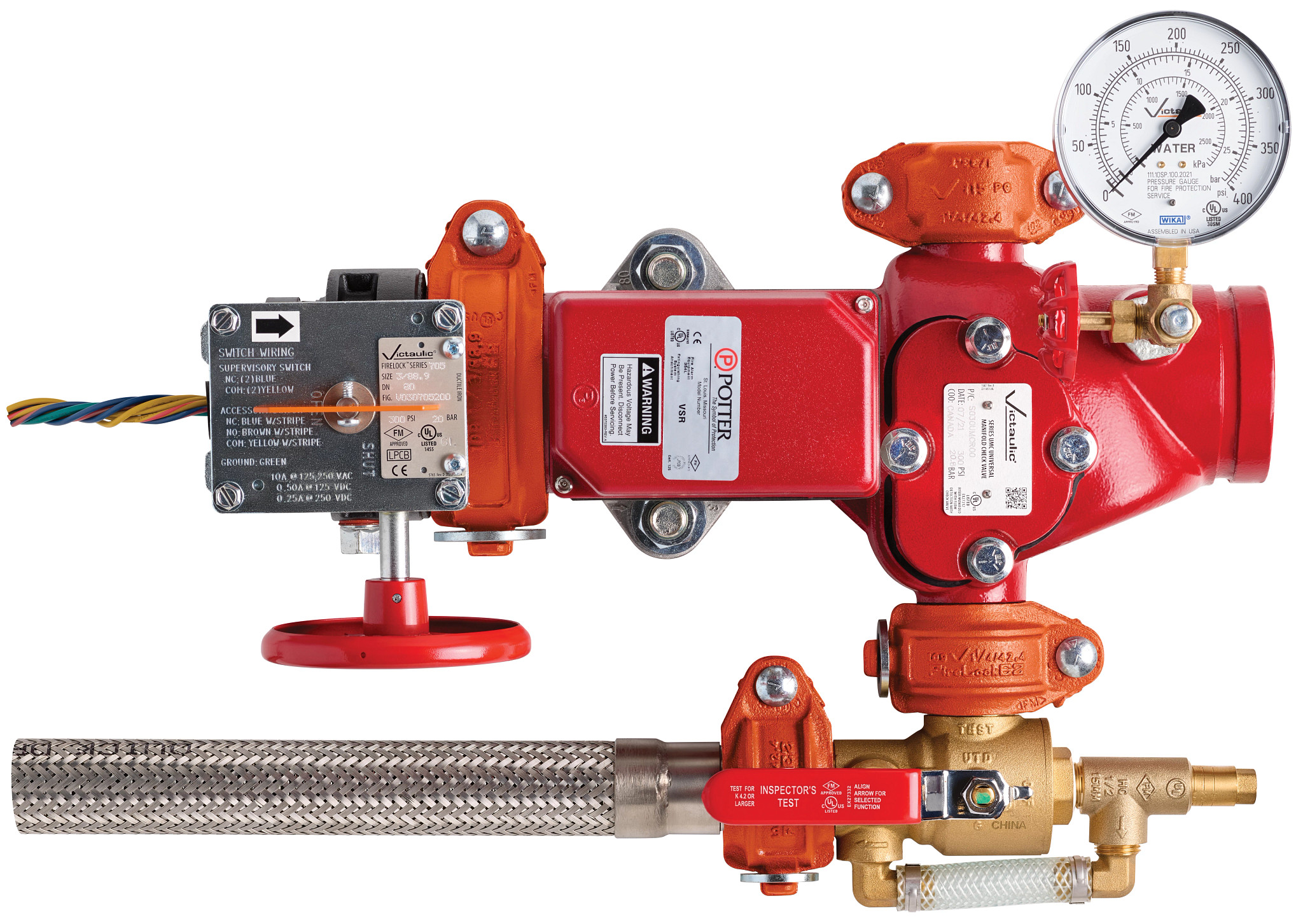 - Straight out of the box, the compact unit integrates all necessary components per NFPA 13: control valve, check valve, flow switch, Universal Test and Drain | Series UTD , Adjustable Relief Valve | Series ARV, flexible drain hose, and gauges